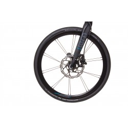 Ce vélo Verge P10 se distingue en utilisant des roues de plus grand diamètre que les autres vélos pliants Tern (451 contre 406). Ces roues Kinetix Pro Disc sont conçues à la manière des roues des vélos de course : les jantes sont légèrement profilées pour améliorer l'aérodynamisme, et le rayonnage assure une grande robustesse et une meilleure rigidité.