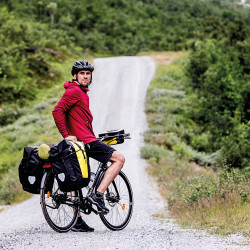 Des sacoches à très grande capacité (70L) en toile de bâche (PVC), pour le voyage à vélo.