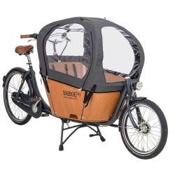 + de détailsLa tente de pluie Babboe City forme une protection intégrale, indispensable par mauvais temps ou pour se prémunir du soleil, pour les petits passagers installés à bord de la caisse. Cette tente est spécialement dessinée pour le biporteur Babboe City. Elle est disponible en trois coloris (noir, bleu, gris).