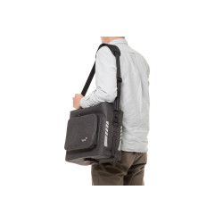 La sangle d'épaule amovible et rembourrée facilite le portage à la descente du vélo.