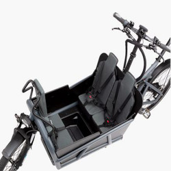 NB : Même si la configuration est proposée par la marque, conformément à la législation, seul 2 enfants peuvent prendre place à l'avant ou à l'arrière d'un vélo cargo.