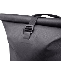 Le tissu extérieur est un nylon structuré enduit PU, qui assure une protection imperméable efficace, certifiée IP64. Le sac supporte facilement les mauvaises conditions, il vous soutient tout au long de l'année sans aucun risque. Pour être totalement imperméable, notez que la fermeture doit s'enrouler sur 3/4 tours. Le sac est maintenu fermé par une boucle métallique facile à manipuler.