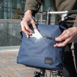Une sacoche étanche pour transporter vos affaires sur votre Brompton, adaptable en bandoulière ou sac à dos.