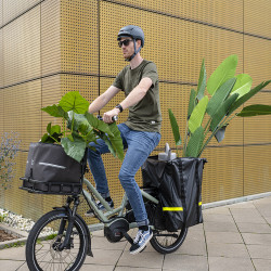 La Storm Box Mini prend place à l'arrière du vélo cargo Tern GSD ou HSD. Cette large sacoche/protection de pluie utilise une toile robuste et du nylon ripstop, qui résistent très bien à l'abrasion et à la charge. Permettant de supporter 40 kg de charge, elle a un volume de 100 litres. L'intérieur est doté de plusieurs poches (x5) pour ranger des bouteilles, le goûter, etc. Sur la partie arrière extérieure, vous trouverez des passants pour fixer un feu de sécurité.