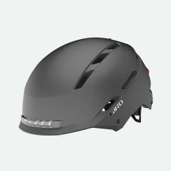 Le casque vélo ville Giro Escape incorpore un système d'éclairage LED, avec une lumière blanche devant et rouge derrière. Immanquables dans le trafic urbain, ces feux sont commandés facilement, via les boutons situés au sommet du casque. Vous avez deux touches pour gérer individuellement l'éclairage avant et arrière, qui peut diffuser en mode continu ou flash. Le port de charge micro-USB est accessible au niveau des boutons de commande (norme d'étanchéité IP65).