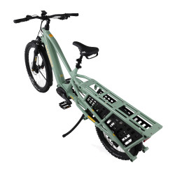 Constamment amélioré grâce aux retours d'expérience, le Yuba Spicy Curry+ est en à sa 4e génération. Ce millésime 2024 gagne encore des points au niveau du confort et du design. Le fabricant introduit une fourche télescopique SR Suntour et intègre la batterie VAE Bosch directement dans le cadre. Ces évolutions n'impactent pas la capacité de charge habituelle, vous profitez d'un vélo avec un PTAC de 200 kg et trois places assises à l'arrière. Le porte-bagages arrière est suffisamment robuste pour support le poids d'un adulte.