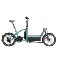 Ce vélo cargo électrique Riese & Müller Carrie présente un cadre aluminium avec des tubes puissants aux lignes arrondies qui font belle impression. Il est composé à 80% à partir de matériau recyclé, ce qui permet de réduire la consommation énergétique durant la production. Les roues de 20 pouces participent à la belle agilité du vélo. Vous avez une fourche télescopique Suntour avec 50 mm de débattement, pour adoucir la conduite. Quant à la tige de direction, elle se règle en hauteur et en inclinaison. Elle s'adapte à votre taille, entre 1,50 et 2,00 m.