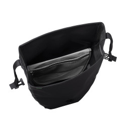 Cette paire de sacoches arrière Vaude Aqua Back (rec) utilise un tissu principal solide en polyester recyclé, façon toile de bâche, sans PVC. Elle est imperméabilisée par un revêtement PU double face et renforcée par une trame Fish Skin. Les parties latérales sont en polyamide recyclé. En cas de pluie, aucune goutte ne risque de traverser. Vous pouvez compter sur la fermeture enroulée et le soudage étanche des coutures. Au total, avec les deux sacoches Aqua Back (rec), vous avez un volume de rangement de 48 litres. Vous pouvez embarquer jusqu'à 25 kg d'affaires en voyage vélo, ce qui représente une bonne quantité de vêtements de rechange. Notez la présence d'une poche zippée à l'intérieur pour optimiser le rangement.