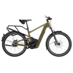 Modèle top de gamme, le speedelec Riese & Müller Delite5 HS reçoit le moteur Pinion MGU C1.12S. L'unité au pédalier intègre aussi une transmission 12 vitesses, le tout dans un bloc compact de 4,1 kg. Le moindre composant est protégé. La durée de vie est maximale et l'entretien facilité, avec une simple vidange à faire tous les 10 000 km. Le système Pinion 2-en-1 est super cohérent du point de vue technologique (hardware et software). Le moteur et la boîte de vitesses fonctionnent en bonne intelligence. La courroie Gates, qui offre des facilités d'entretien, complète le dispositif.
