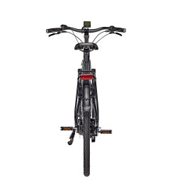 Il n'y a rien à redire sur le niveau de confort de ce modèle, qui vous propose un poste de pilotage réglable, avec un guidon recourbé et des poignées ergonomiques. Vous bénéficiez d'une position de conduite droite qui évite les tensions au niveau du dos ou des cervicales. Les revêtements pavés ne sont pas un problème, puisque la fourche Suntour et la tige de selle à ressort encaissent la plus grande part des vibrations. Vous avez 63 mm de débattement à l'avant.