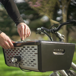 Ce coffre de transport sécurisé Yuba Pot bénéficie d'une conception robuste, avec des panneaux en aluminium et en plastique. L'avantage principal ici, c'est le couvercle verrouillable. Il permet de protéger le contenu quand vous laissez le vélo quelques minutes à l'extérieur, pour faire des courses ou pendant une séance de sport. Yuba a prévu les indispensables ouvertures latérales qui servent de poignées de transport.