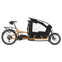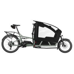 + de détailsLe vélo cargo électrique Riese & Müller Load4 75 EASY est de retour en version tout équipée. La caisse avant est aménagée avec 2 sièges pour les enfants et une capote de pluie. Le fabricant monte aussi un porte-bagages arrière sur ce biporteur, le plus confortable de son catalogue.