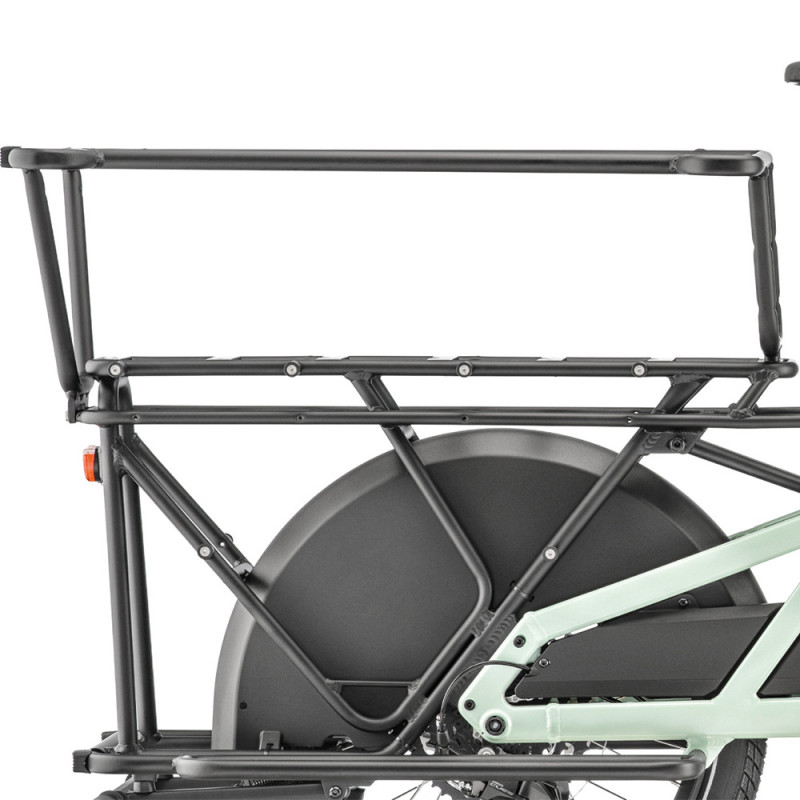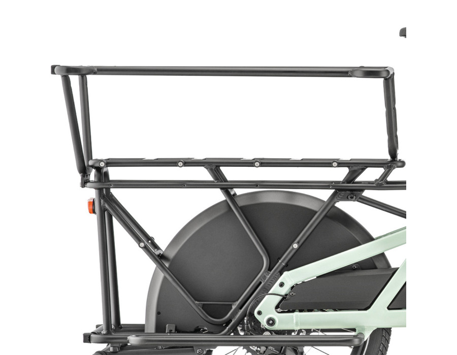 La partie cargo se résume en quelques chiffres. Il faut retenir le poids total autorisé en charge (200 kg) et le poids limite admis sur le porte-bagages (70 kg). Le long rack permet d'installer 2 enfants, un tout-petit dans un porte-bébé avec un plus grand sur un siège junior, par exemple. Le vélo est déjà équipé de repose-pieds et de la structure passager Albert. Elle sécurise les enfants et peut servir à transporter des colis ou des caisses remplies de courses. À noter, vous pouvez faire suivre le Lundi 20 Cargo 1 au bureau ou à domicile et le ranger à l'intérieur, en position verticale.