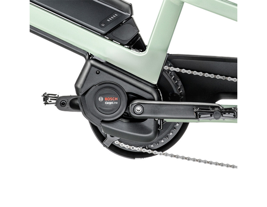 Le vélo cargo longtail Moustache Lundi 20 Cargo 1 est équipé du fameux moteur Bosch Cargo Line, dans une version Smart System 100% connectée. L'assistance Bosch s'adapte à chaque situation, notamment les plus critiques comme les départs en côte, pour vous aider à maîtriser le vélo avec son chargement. L'action au démarrage est remarquable. Avec son couple de 85 Nm, le puissant moteur vous soutient immédiatement, même si vous appliquez peu de pression sur les pédales. Le mode Cargo surpuissant est un régal sur les parcours accidentés.