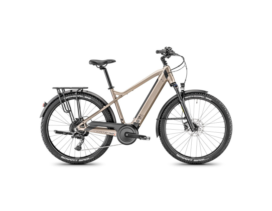 Moustache opte pour une assistance douce et harmonieuse avec le moteur Bosch Active Line Plus, qui offre un couple raisonnable (50 Nm). Le Samedi 27 Xroad ES montre ainsi sa préférence pour les parcours paisibles, peu ou moyennement accidentés. C'est le confort et le silence qui priment ici. La formule parfaite pour aborder les déplacements urbains et randonner en pleine nature. Vous avez tous les avantages du Smart System Bosch, comme les réglages personnalisés des modes de conduite ou la fonction Lock qui désactive l'assistance quand vous laissez le vélo sans surveillance.