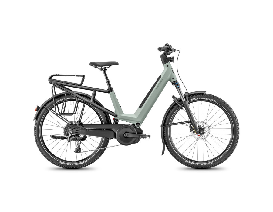 Ce Moustache est équipé d'entrée de jeu avec un puissant phare AXA, un feu arrière Spanninga, un antivol fer à cheval, une béquille, des garde-boue et un cache pour protéger le plateau et la chaîne. Vous avez le choix entre 2 porte-bagages, le minimaliste et le suspendu. Ce dernier est le seul à pouvoir supporter un porte-bébé.