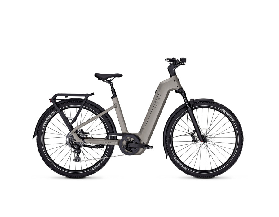 Le système d'éclairage est performant. Monté sur le cintre, le phare Herrmans brille intensément (190 lumens). Vous pouvez naviguer sereinement en ville, avec le feu stop arrière qui signale quand vous freinez. Le porte-bagages arrière peut recevoir des sacoches de randonnée ou un siège porte-bébé. Le rack intègre déjà les fixations MIK. L'équipement est complété par des garde-boue et une béquille.