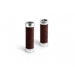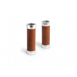 Des poignées avec un grip en cuir, type ruban de cintre.